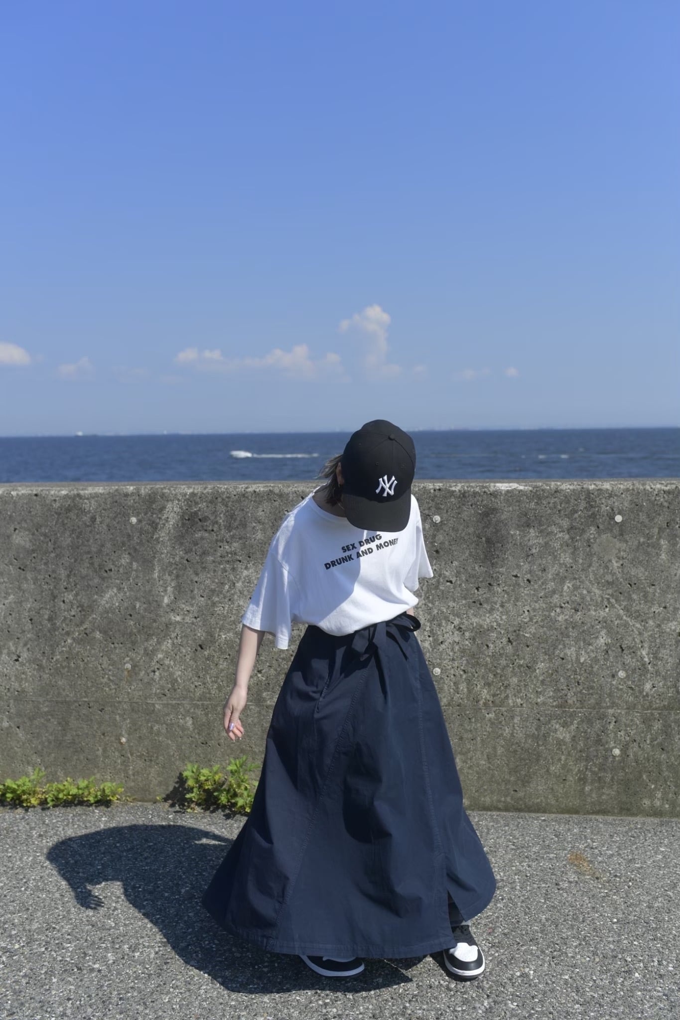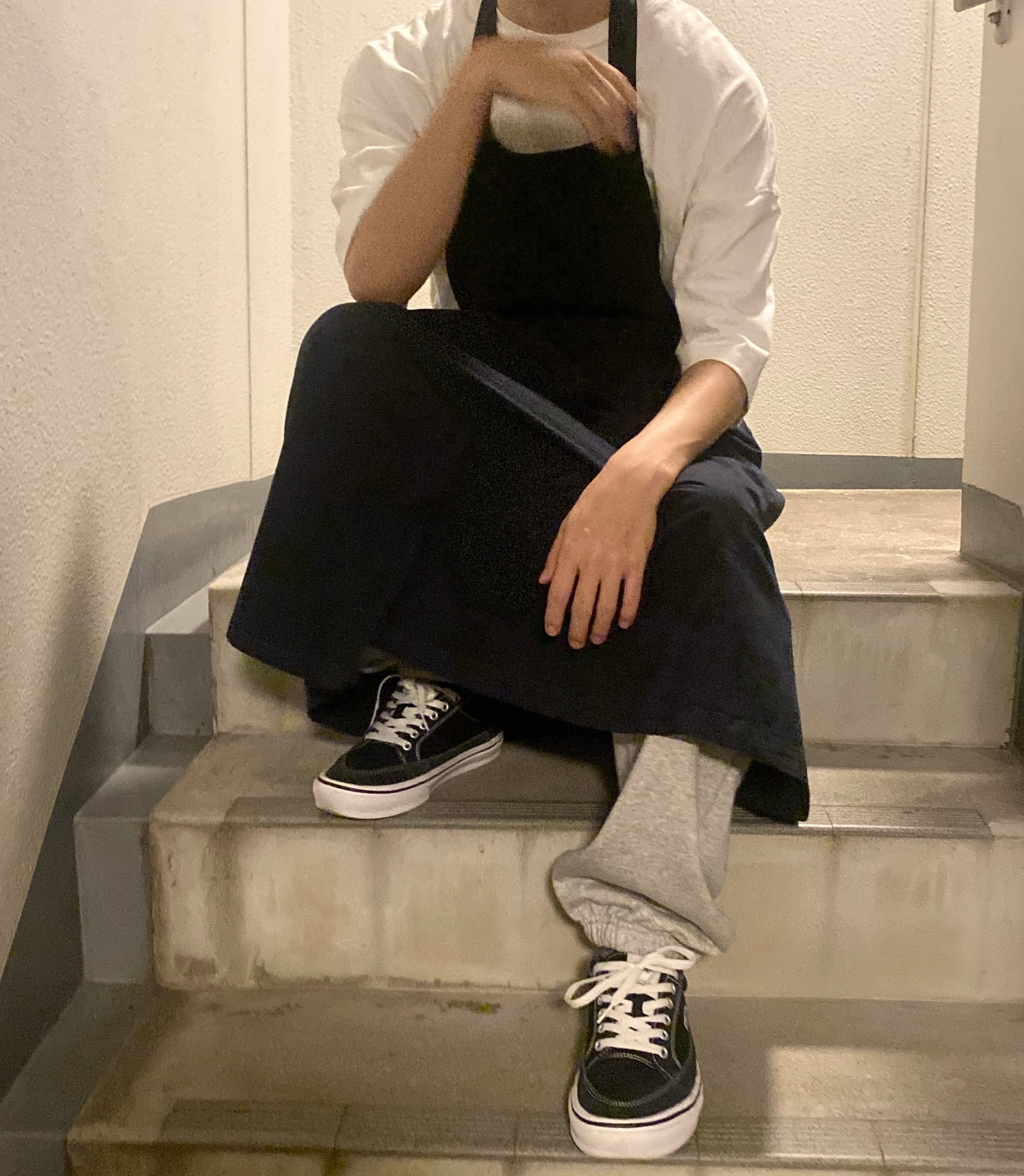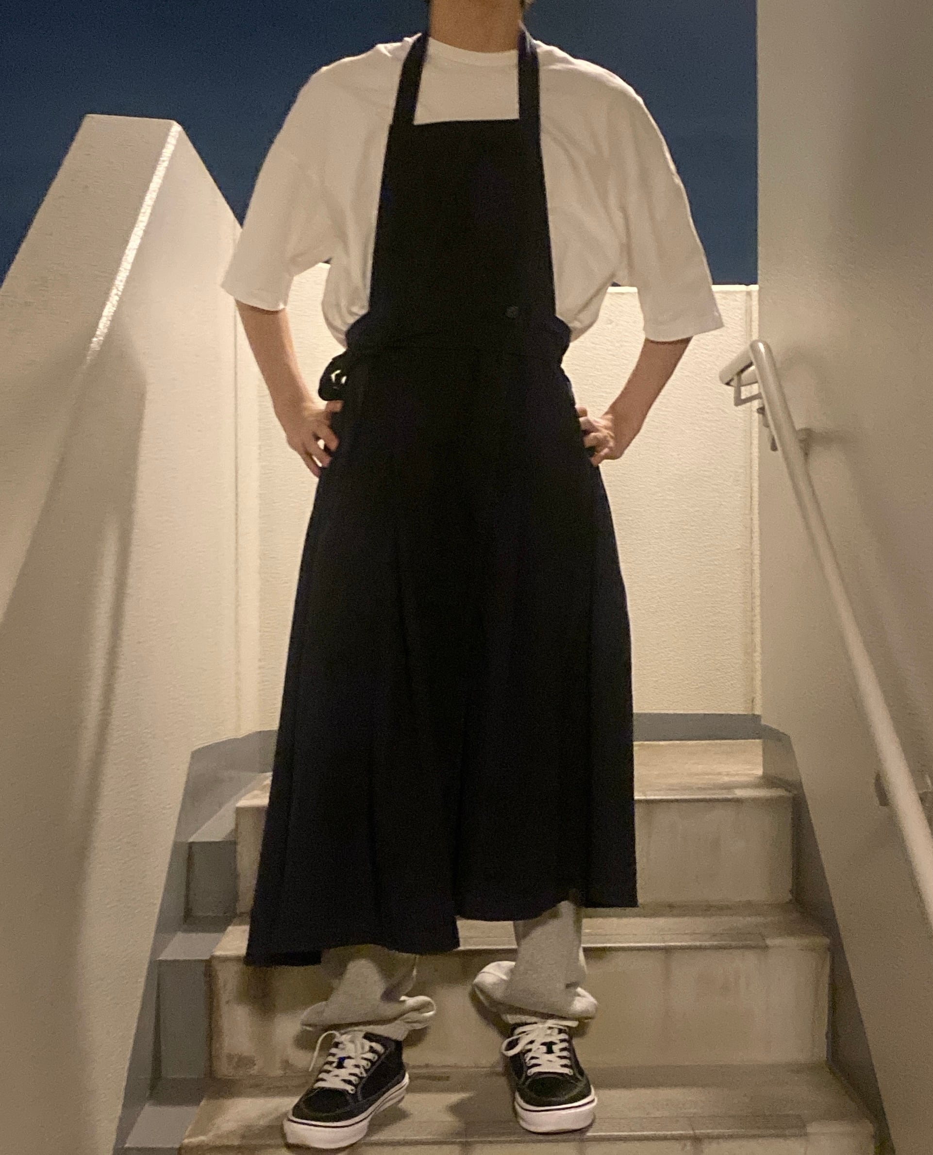 【2WAY apron skirt】 イタリヤの生地メーカーから取り寄せた生地を使用した製品染めのスカートを2枚潰してリユースした2WAYのエプロンスカート。 カジュアルにラップスカートとしては勿論、贅沢にエプロンやサロンとしても使えます。 color NAVY size Free
